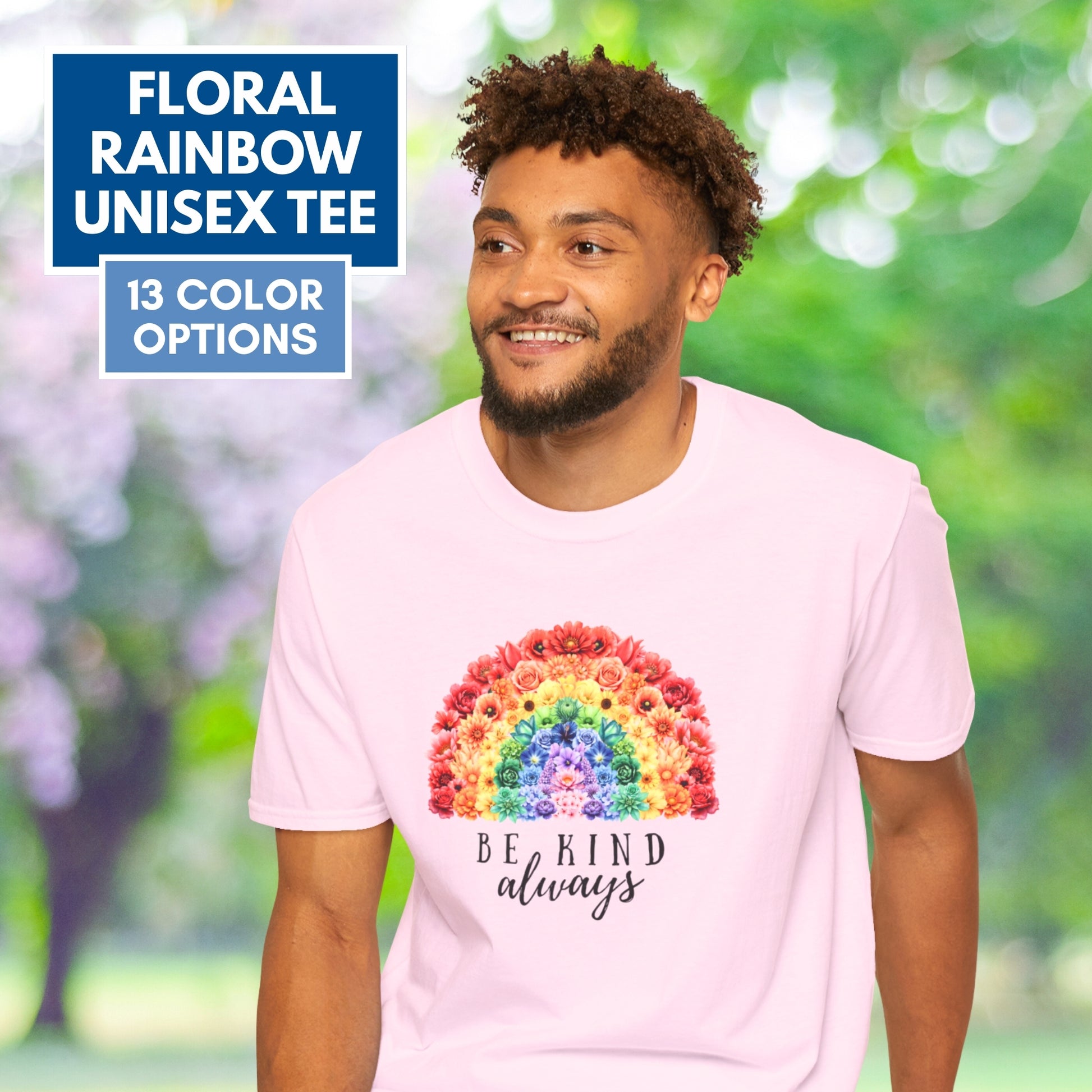 Be Kind Floral Rainbow T-Shirt | Unisex Softstyle Short Sleeve Tee