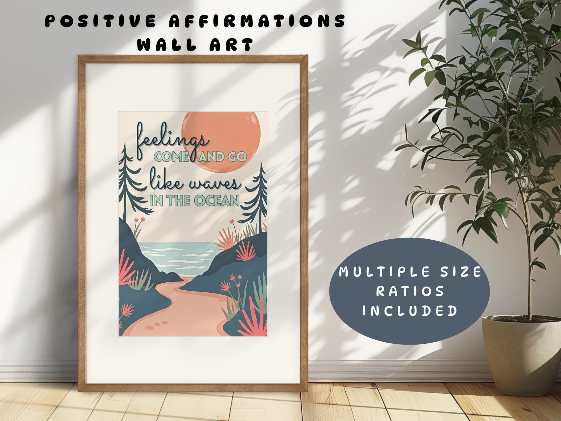 - PNG and JPG formats of the "Feelings Come and Go Like Waves in the Ocean" Poster Design