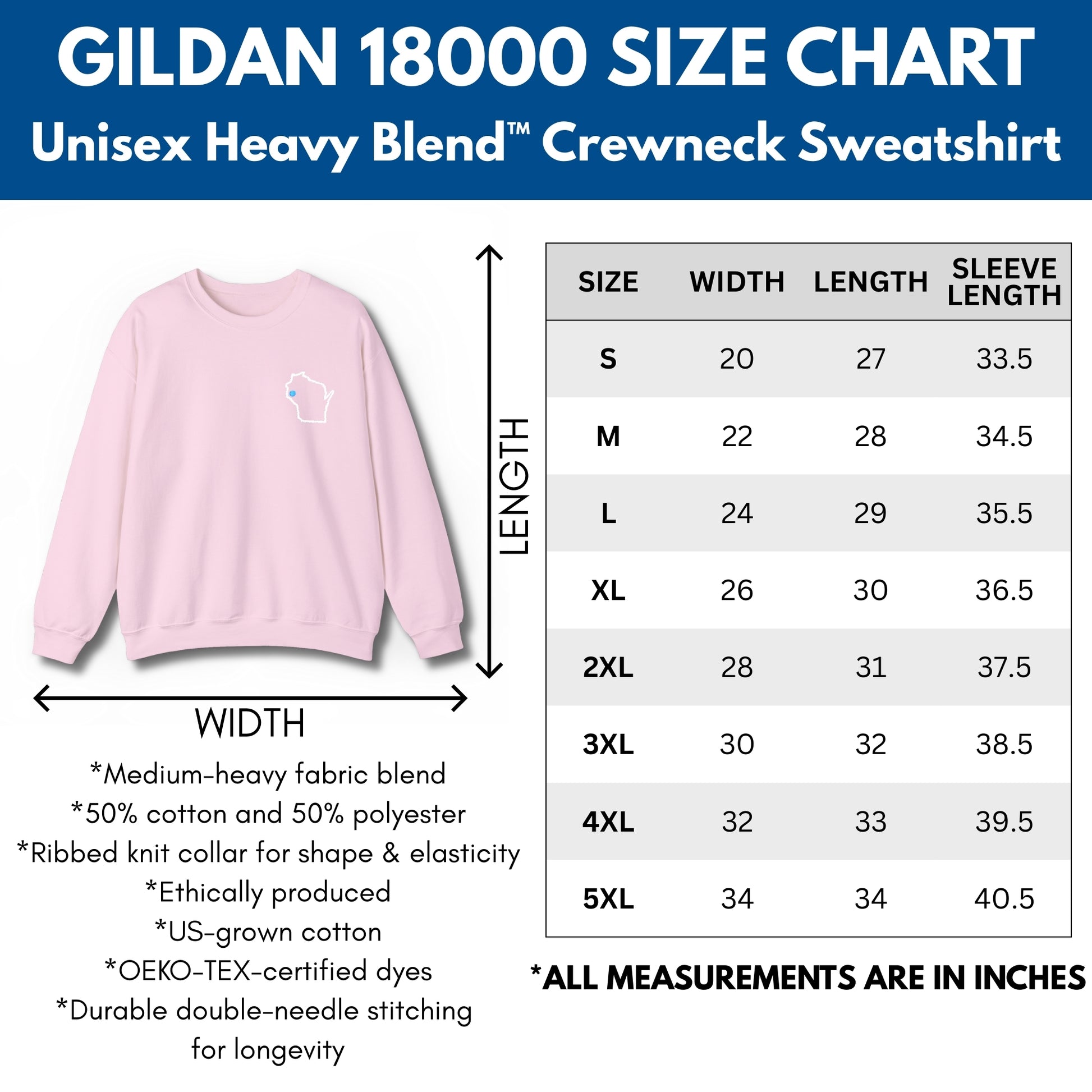 - 50/50 cotton‑poly medium‑heavy fabric (8 oz/yd²) for warmth and durability
