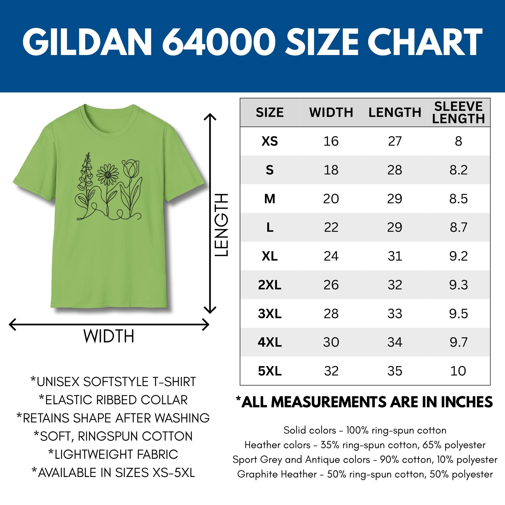 *Subtle FDT Flowers Unisex Softstyle T-Shirt | Foxglove Daisy Tulip, 100% Cotton