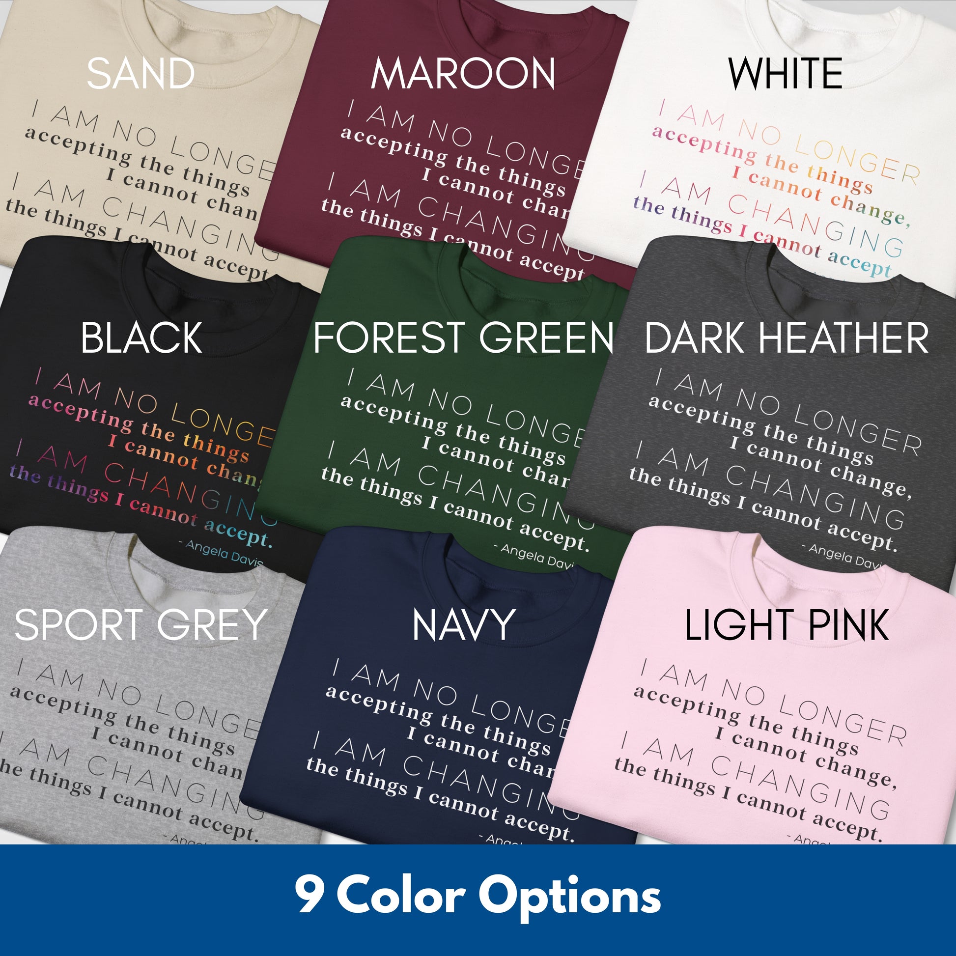I Am No Longer Accepting, I Am Changing Quote | Angela Davis Motivational Crewneck Sweatshirt