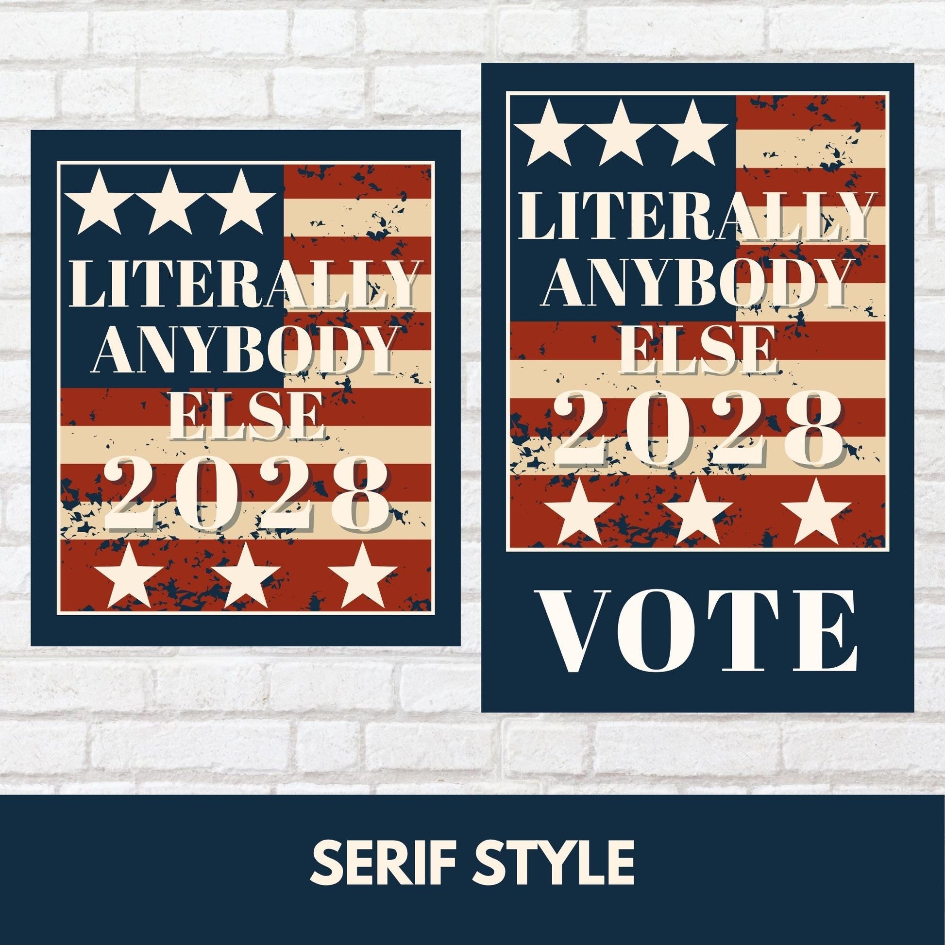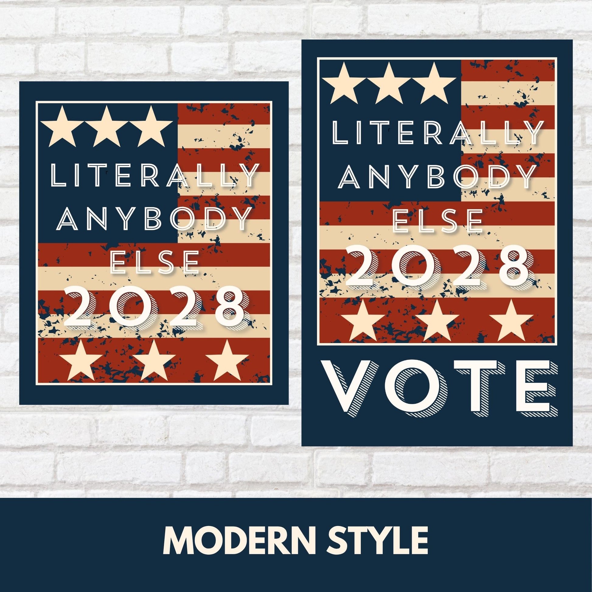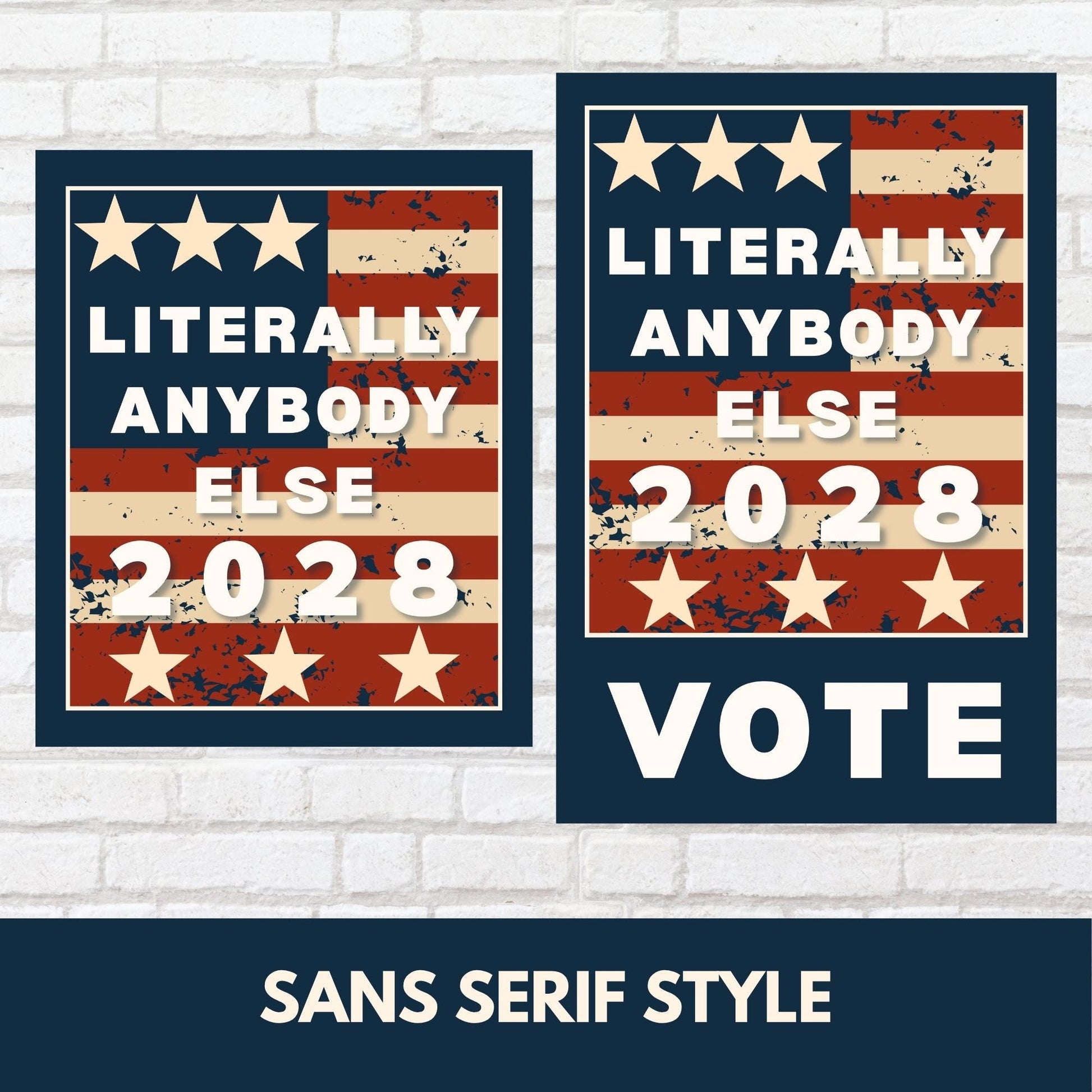 Literally Anybody Else 2028 Printable Sign | Anti-Trump Campaign Poster | Patriotic Political Wall Art | Instant Digital Download