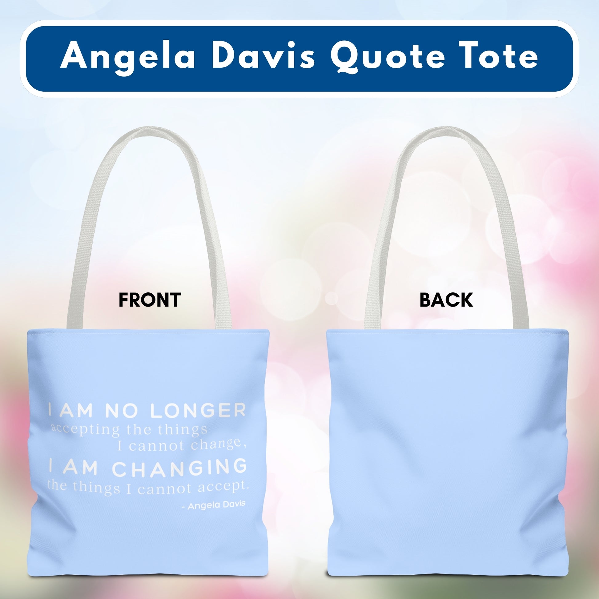 No Longer Accepting, I Am Changing Tote Bag | Blue Angela Davis Quote Political Activist Carry All