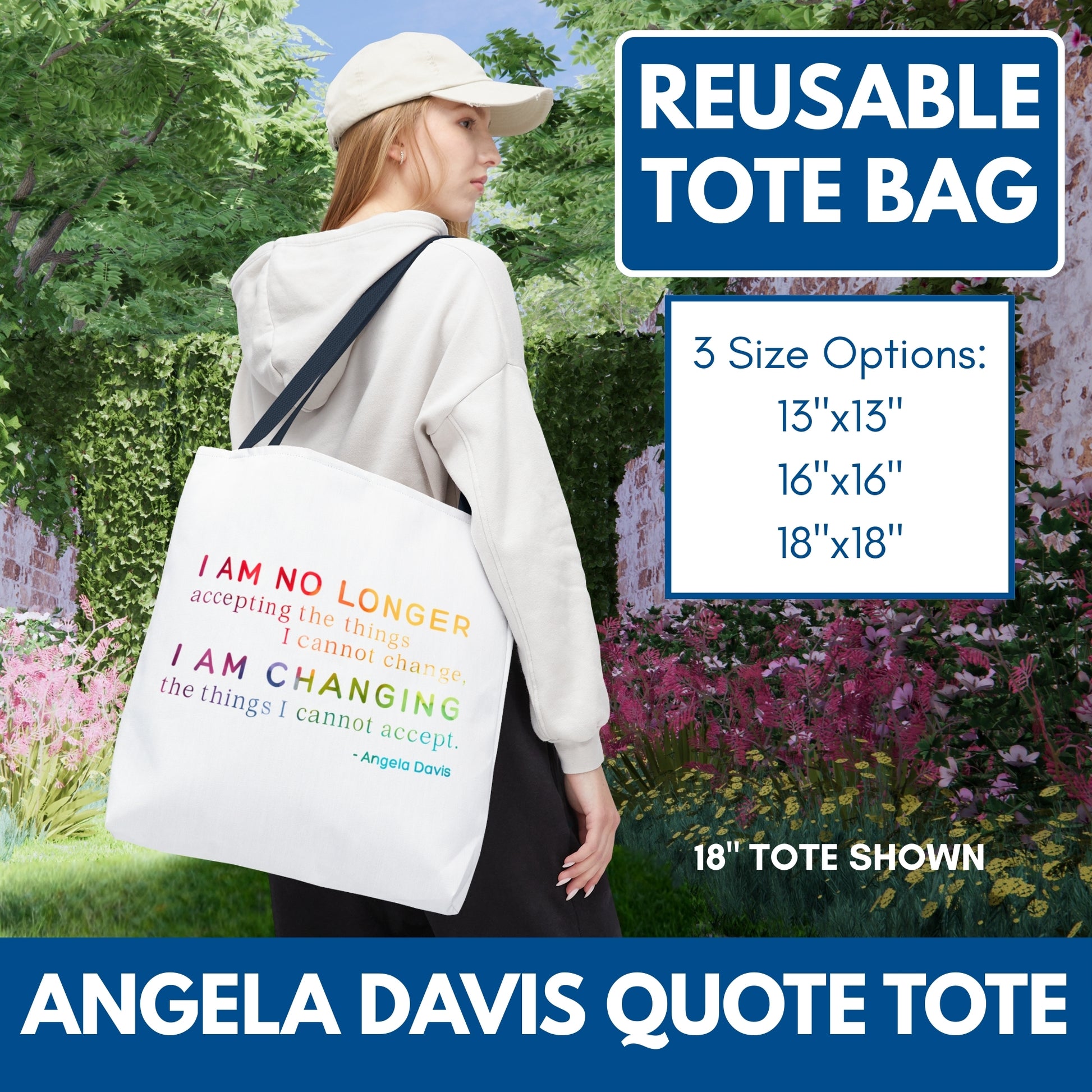 No Longer Accepting, I Am Changing Tote Bag | White/Rainbow Angela Davis Quote Political Activist Carry All