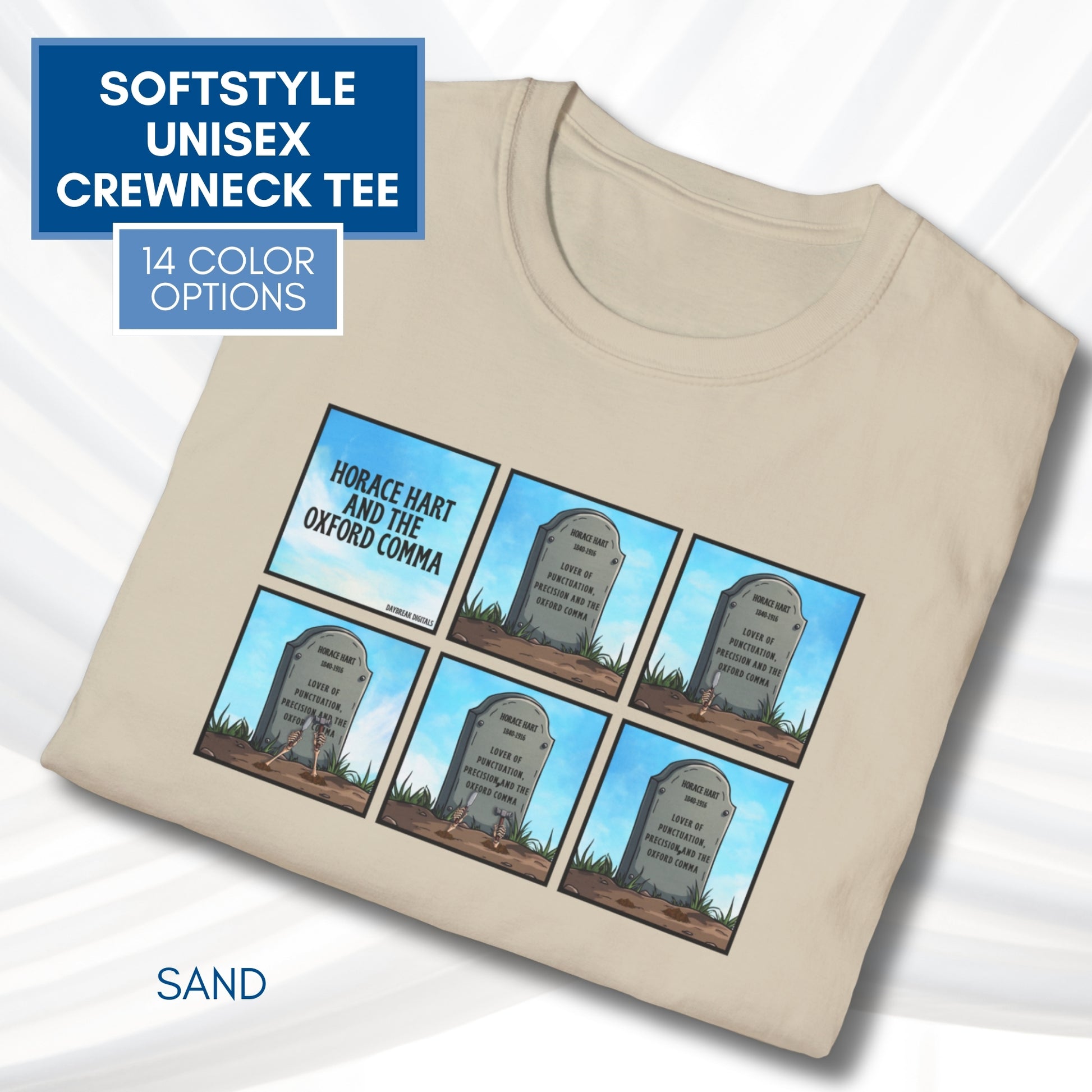 Oxford Comma Funny Grammar T-Shirt | Gildan Unisex Softstyle Short Sleeve Tee