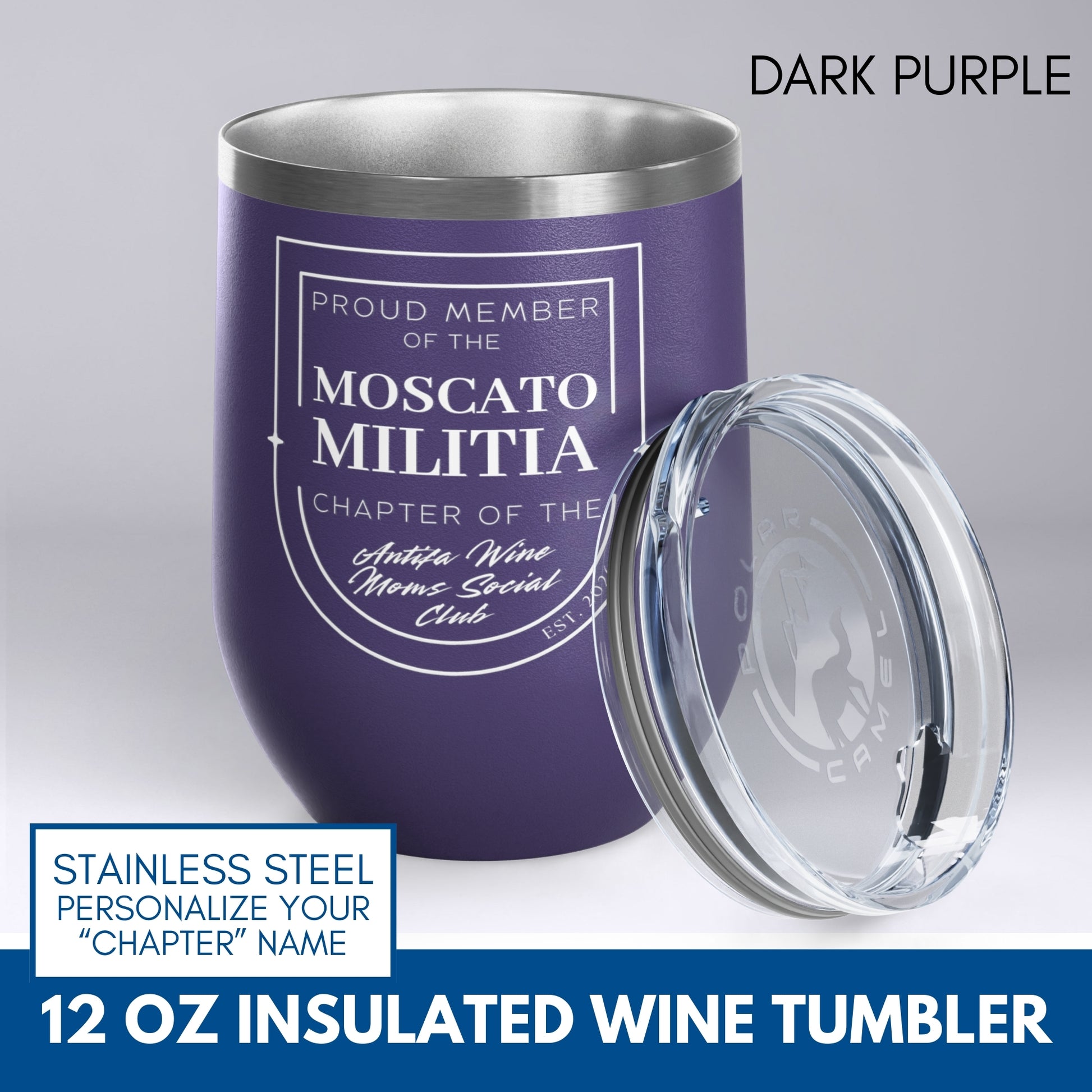 Personalized Antifa Wine Moms Social Club Tumbler | 12oz Stemless Insulated Stainless Steel, Anti Fascist Mom Gang