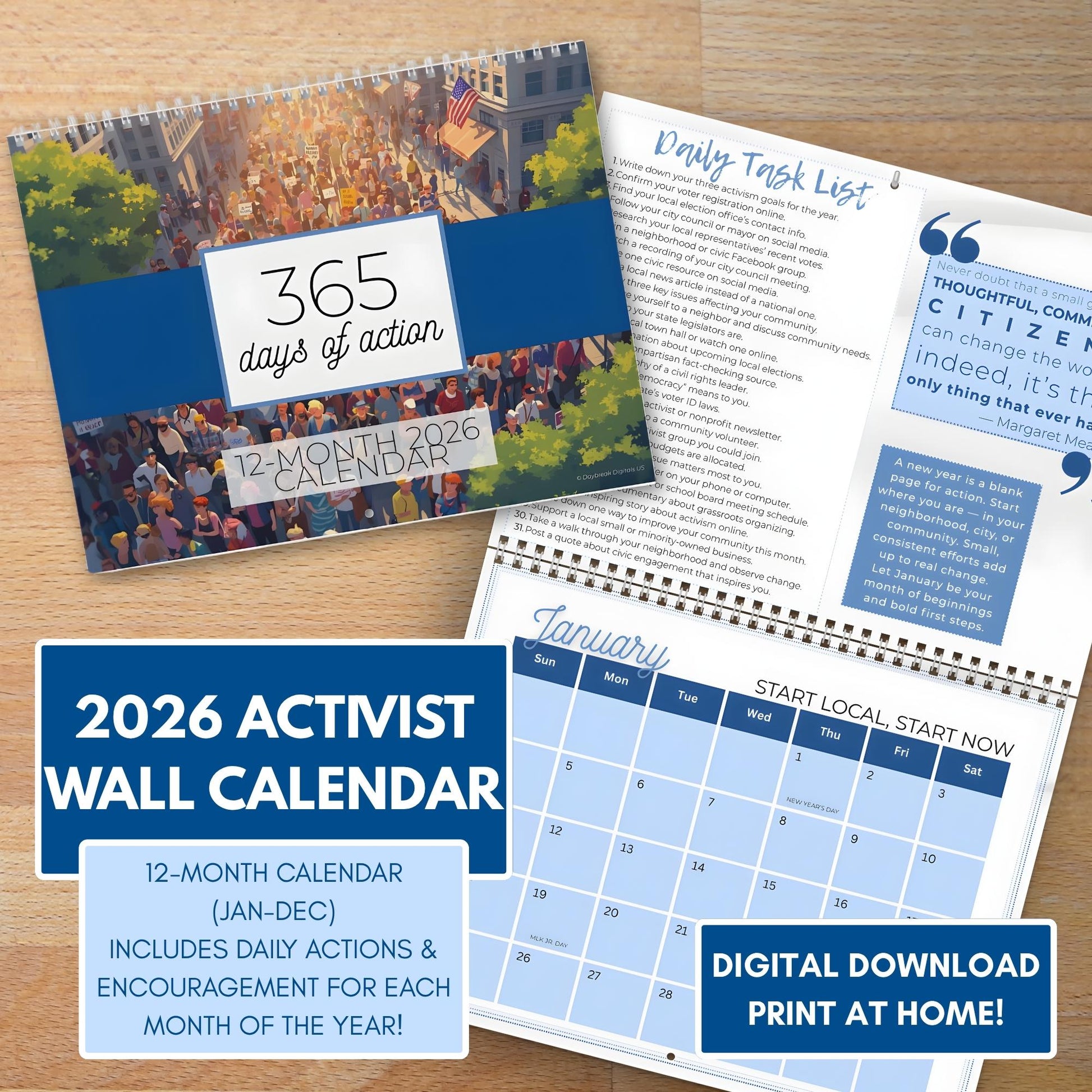 Political Activism 2026 Wall Calendar | 365 Days of Action (8.5x11 PDF, Digital Download)