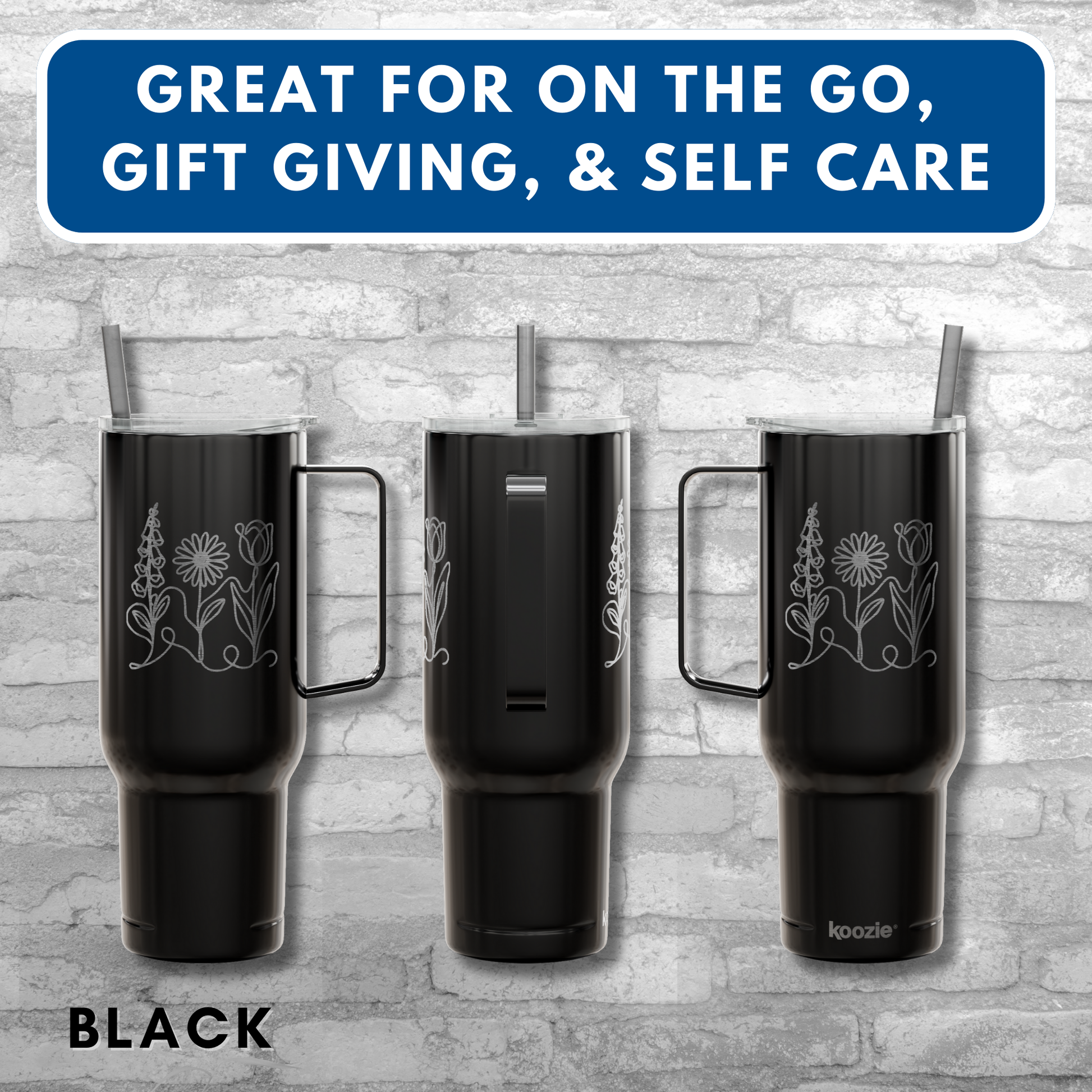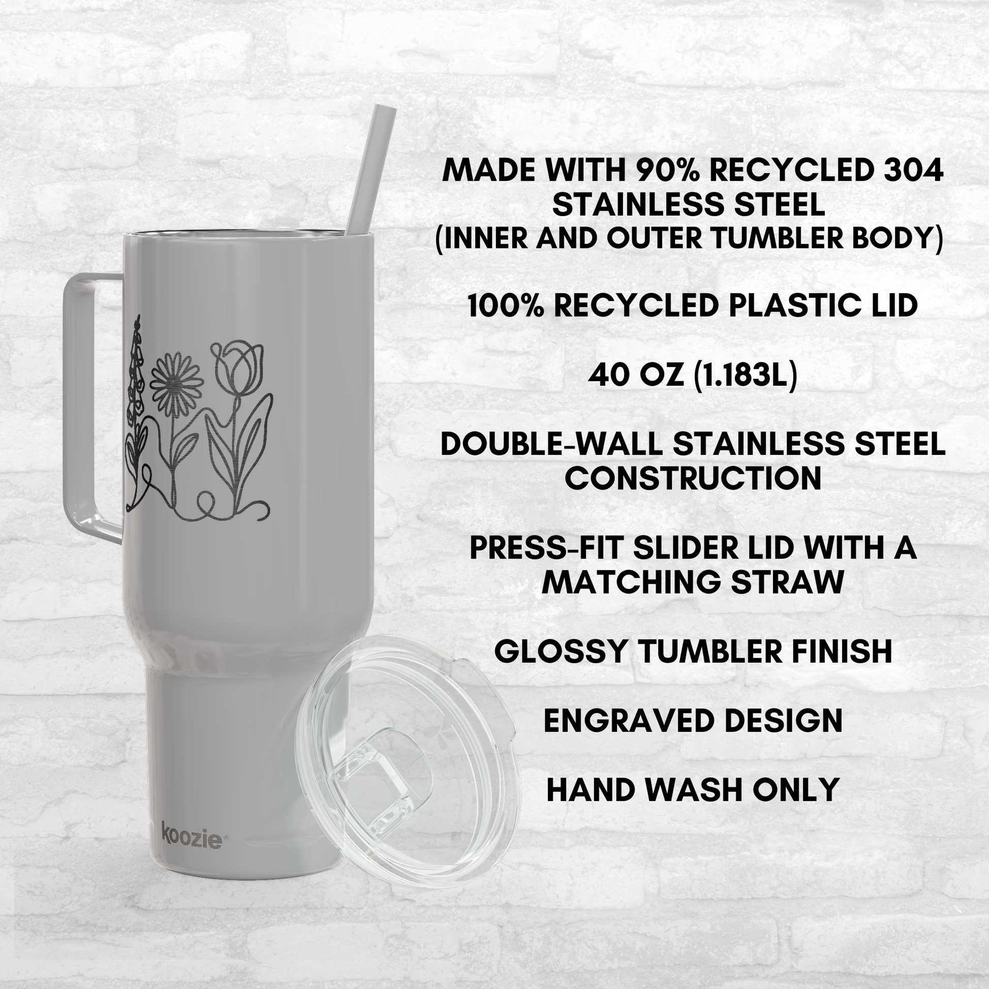 Subtle FDT Flowers Engraved 40 oz Tumbler | Travel Mug, Eco-Friendly Gift (Foxglove Daisy Tulip, Double Sided)