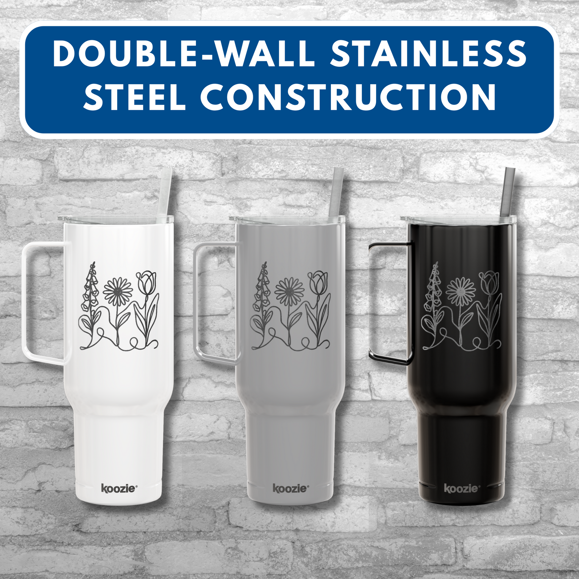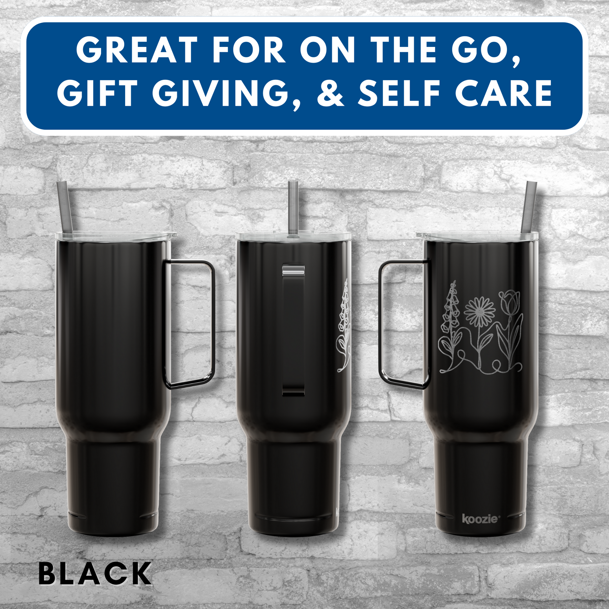 Subtle FDT Flowers Engraved 40 oz Tumbler | Travel Mug, Eco-Friendly Gift (Foxglove Daisy Tulip, Single Sided Design)