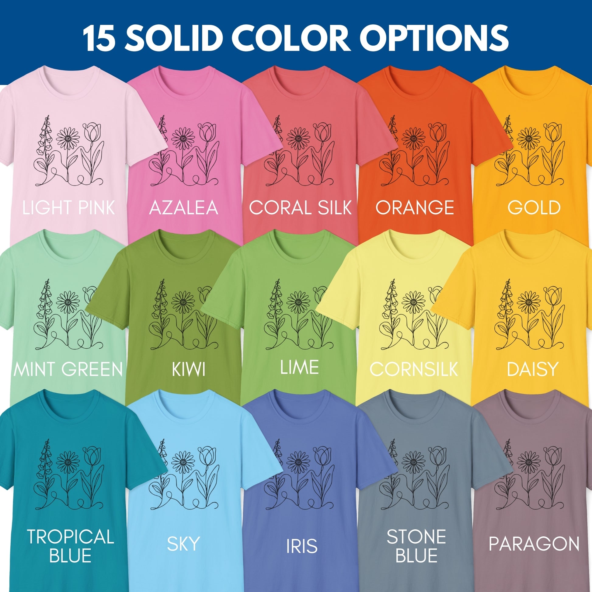 Subtle FDT Flowers Gift Set | Foxglove Daisy Tulip Unisex Cotton T-Shirt + Car Magnet