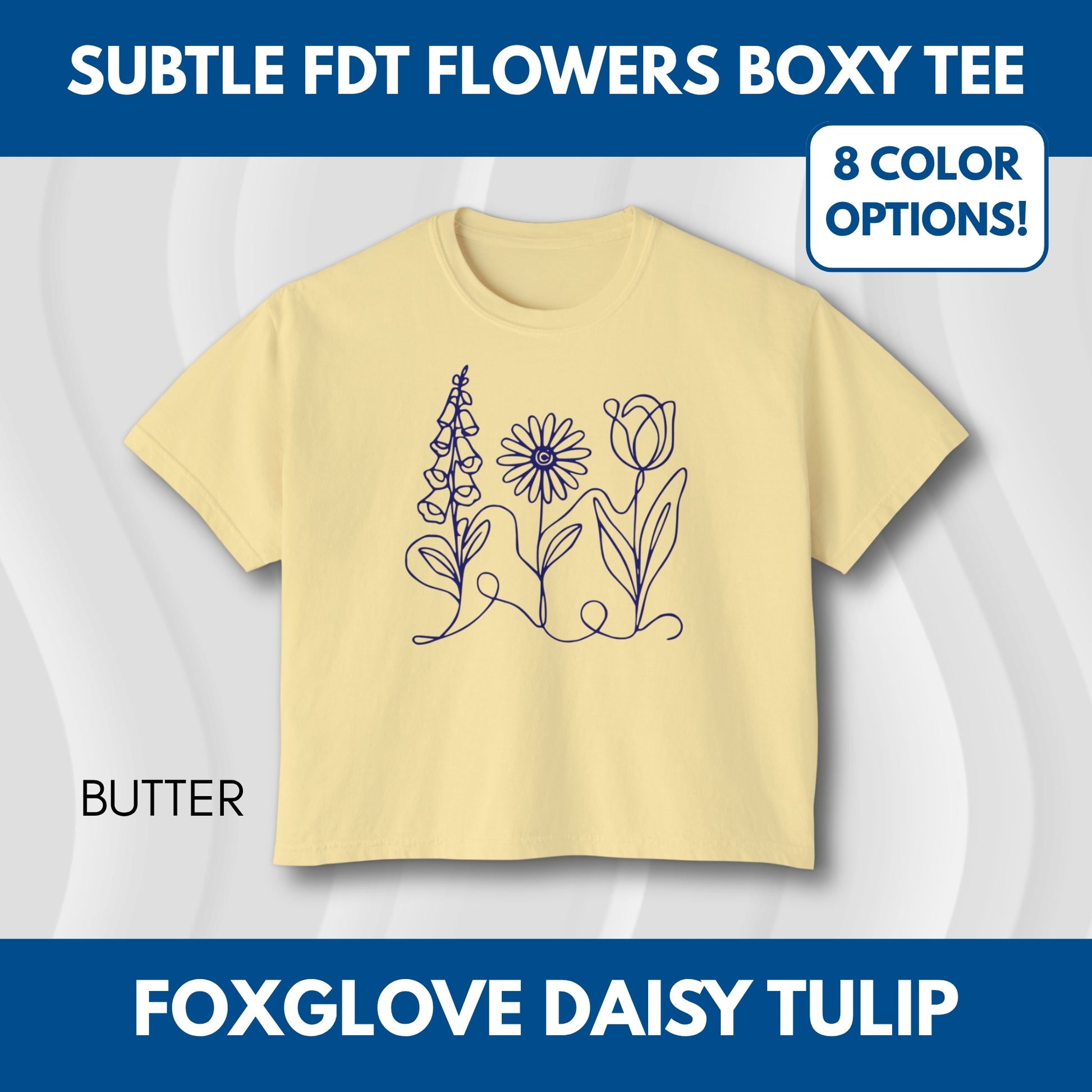 Subtle FDT Flowers Women's Boxy Tee | Foxglove Daisy Tulip, No Words Anti-Trump Shirt