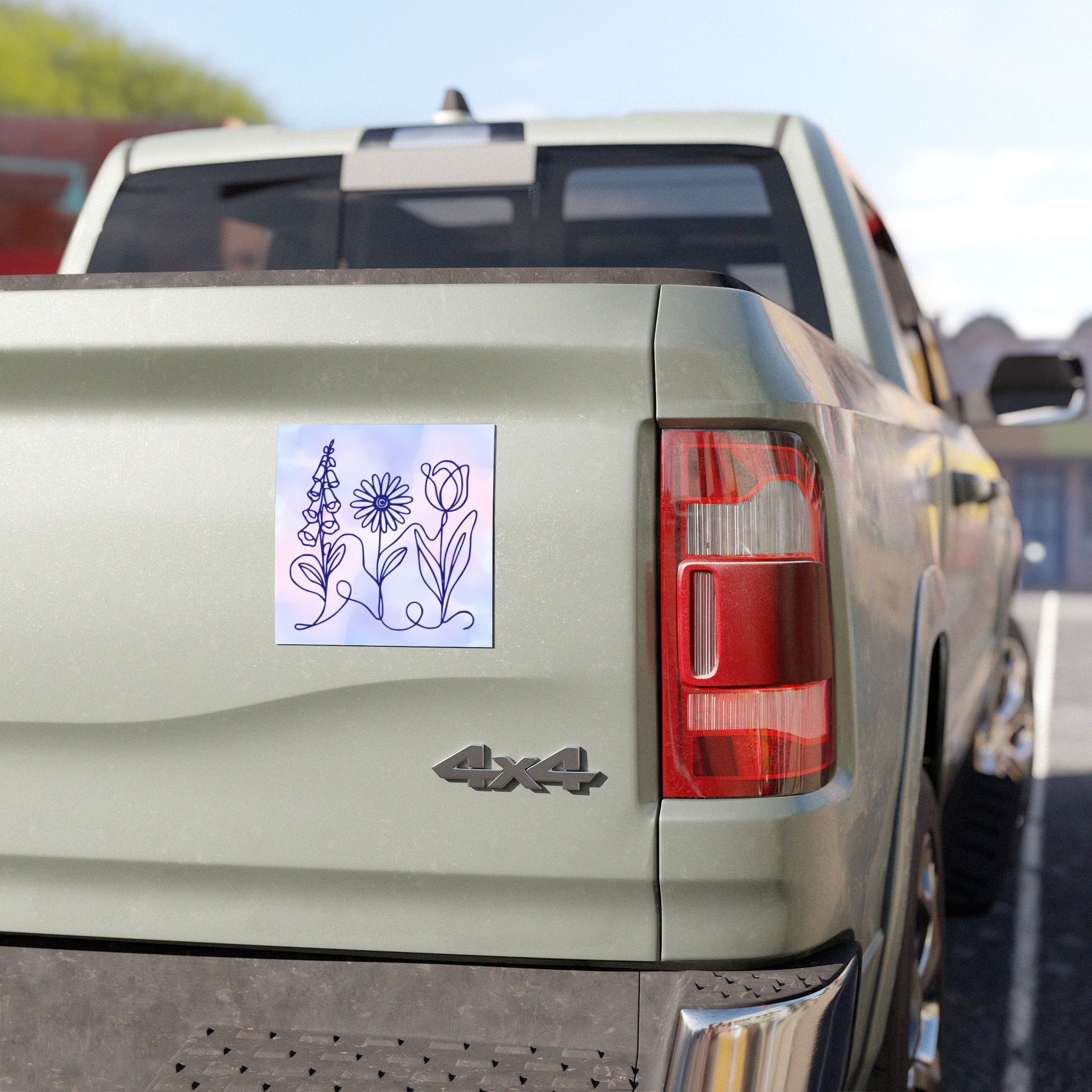Transform your vehicle with this charming car magnet, which features a whimsical floral line drawing design and a splash of resistance. These magnets not only enhance the aesthetic of your vehicle, but also provide a subtle way of delivering your message of activism. No cussing, no hateful words, just three beautiful flowers that convey your feelings. Forget Foxtrot Delta Tango, Foxglove Daisy Tulip is far more beautiful. And you deserve beautiful. Stay strong. Stay kind. And FDT.
